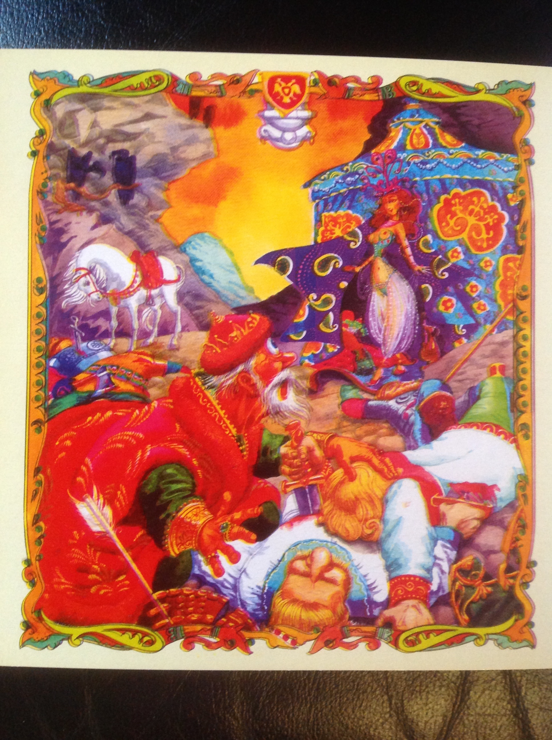 По содержанию, на мой взгляд, ничего особенного нет: мельтешение красок не даёт сосредоточится. Вот сюжетные иллюстрации (изображение мутное и кое-где двоится — это огрехи провинциального непрофильного издательства).