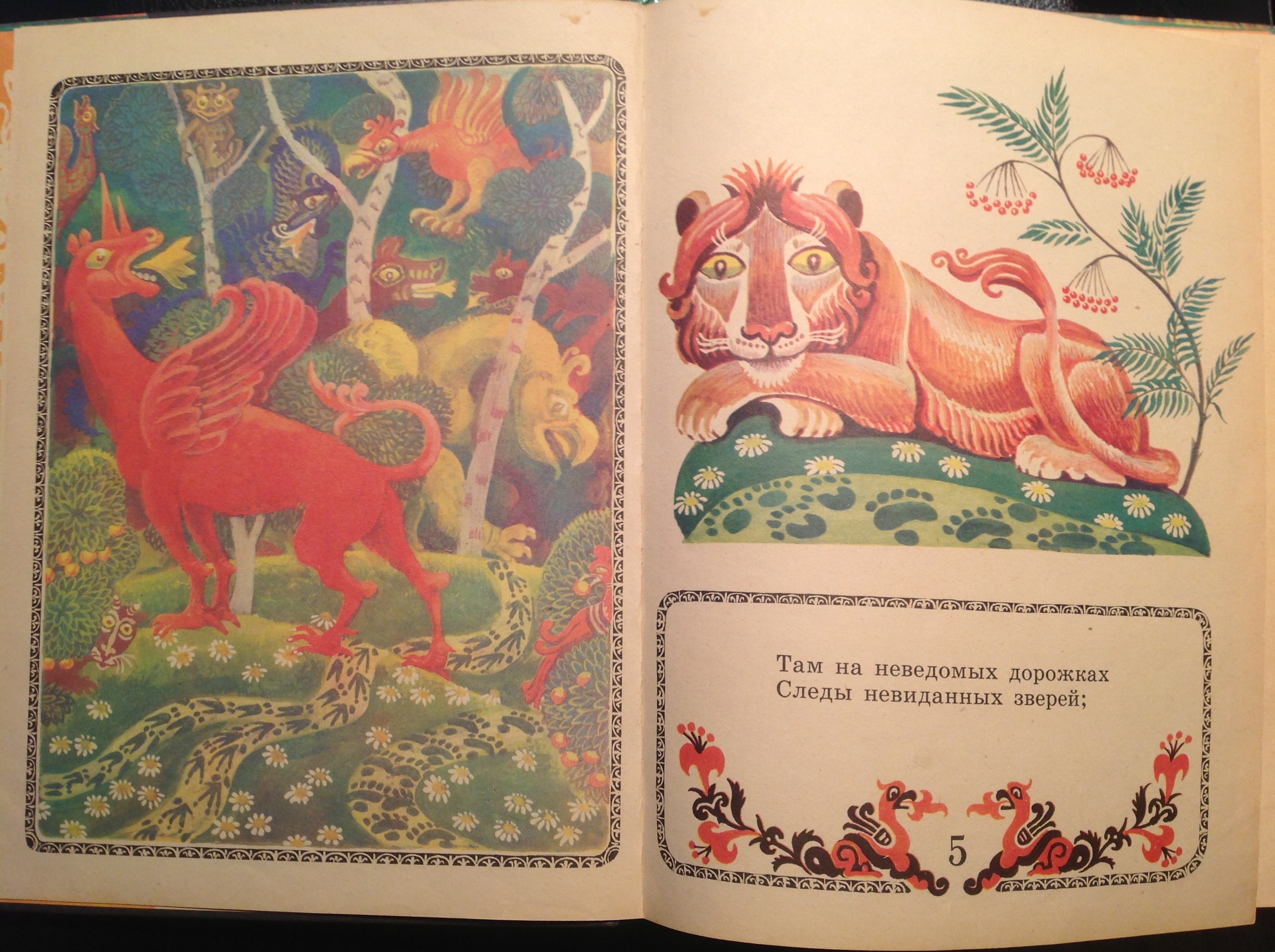 5. Невиданных зверей Кочергин рисовать не стал: в тексте речь только о следах — а их на неведомых дорожках профану не разобрать.