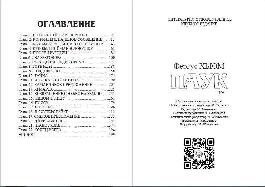 Но вернемся к нашему главному герою — роману "Паук" Фергуса Хьюма.