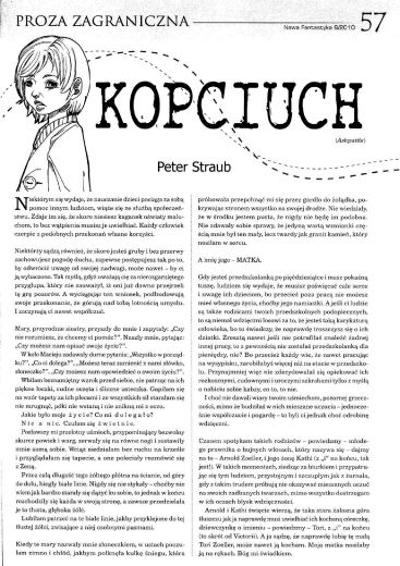 17.2. Рассказ американского писателя Питера Страуба/Peter Straub, который называется в оригинале “Ashputtle” (1984, авт. сб. “Black Thorn, White Rose”; 2000, авт. сб. “Magic Terror: Seven Tales”; 2016, авт. сб. “Interior Darkness”) перевел на польский язык под названием “Kopciuch/Замарашка” КАМИЛЬ ЛЕСЕВ/Kamil Lesiew (стр. 57--64). Иллюстрации ДАРИИ МАЙ/Daria Maj.