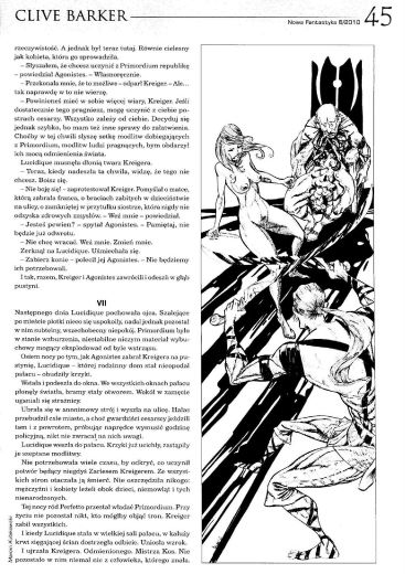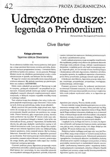 17.1. Текст английского писателя Клайва Баркера, который называется в оригинале “Tortured Souls: The Legend of Primordium” (2001; 2015), перевела под названием “Udręczone dusze: legenda o Primordium/Измученные души: легенда о Праймордиуме” ПАУЛИНА БРАЙТЕР/Paulina Braiter (стр. 42--56). Иллюстрации МАРЦИНА КУЛАКОВСКОГО/Marcin Kułakowski.