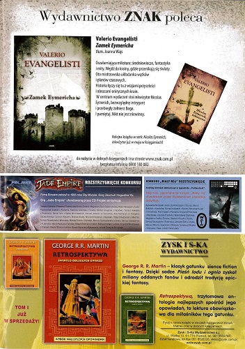 На внутренней стороне задней обложки напечатана реклама фильма «Предчувствие»; на внешней стороне задней обложки – реклама новых книг издательства “Rebis”.