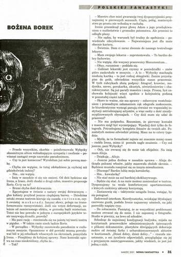 Божена Борек – театральная актриса, чье основное амплуа: колдунья. Как и в дебютном рассказе, действие этого рассказа разворачивается в атмосфере horror-а в театральной среде и речь идет о театральном искусстве и той цене, которую за него иногда приходится платить. Позже рассказ нигде не перепечатывался. На русский язык (как, впрочем, и на другие языки) не переводился.