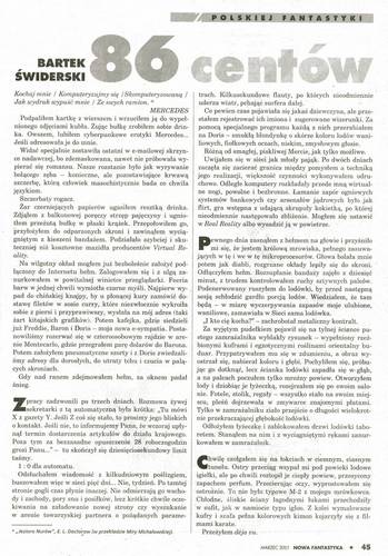 10.1. Повесть “Zapach szkła/Запах стекла” написал Анджей Земяньский. В номере напечатана последняя из тех трех частей, на которые был разбит для публикации текст (стр. 45—54). Иллюстрации АРТУРА СИТНИКА/Artur Sitnik.