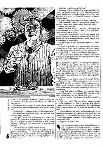 3. Роман американской писательницы Лоис Макмастер Буджольд/Lois McMaster Bujold, который называется в оригинале «Falling Free» (1987, ”Analog”, Dec. и Mid. Dec.; 1988, ”Analog”, Jan. и Feb.), перевела на польский язык под названием «Stan niewolności» АННА ДОРОТА КАМИНЬСКАЯ/Anna Dorota Kamińska (окончание, стр. 25-41). В номере журнала публикуется шестой, заключительный фрагмент перевода. Иллюстрации АНДЖЕЯ ГЖЕХНИКА/Andrzej Grzechnik.
