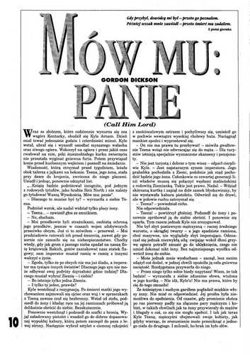 2. Рассказ американского писателя Гордона Диксона/Gordon Dickson, который называется в оригинале «Call Him Lord» (1966, “Analog”, May; 1967, ант. “Nebula Award Stories Two”; 1978, авт. сб. “Gordon R. Dickson's SF Best”), перевел на польский язык под названием «Mów mu: panie/Называй его: господин» АЛЕКСАНДЕР ГЛËНДЫС/Aleksander Glondys (стр. 10-16, 25-26). Иллюстрации ПЕТРА ГЕРАСИНЬСКОГО/Piotr Gierasiński.