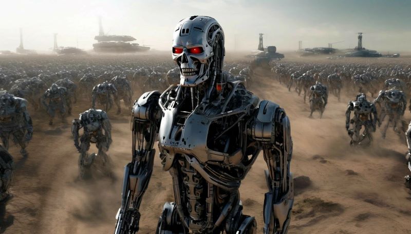 Гонка вооружений сбивается с пути, что прекрасно показано в «Терминаторе» -- военная сеть искусственного интеллекта Скайнет берет вооружение под свой контроль и после ядерного холокоста истребляет остатки человечества.