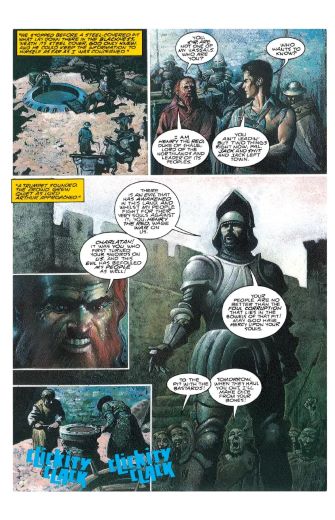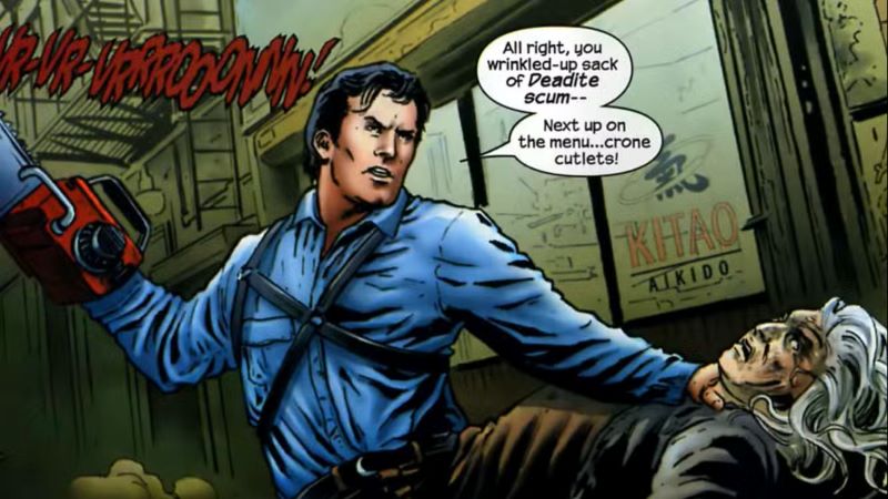 Сэм Рэйми, ДЖОН БОЛТОН «Армия тьмы» (Sam Raimi, John Bolton “Army of Darkness”, 1992) – комиксная адаптация культового фильма Сэма Рэйми, прочно вписанная в жанр хоррора. Фотореалистичные, мрачные иллюстрации, изобретательность, безумие в оформлении монстров и доработанный, гораздо более серьезный сценарий поднимает это произведение гораздо выше кинокартины с Брюсом Кэмпбеллом в главной роли.