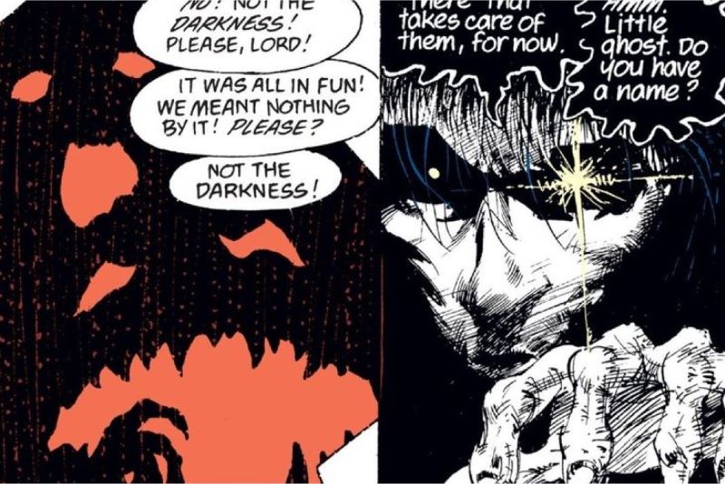 Нил Гейман «Песочный человек» (Neil Gaiman “Sandman”, 1989–1996) — произведение, изменившее облик комиксов. Морфеус — персонификация Сна — после многих лет плена сбегает от своего похитителя. Ему предстоит восстановить разрушенное королевство и столкнуться с кошмарами прошлого. Хотя в последующих частях элементов больше элементов фэнтези, чем «ужасов», «Песочный человек» до сих пор является образцом построения настроения попадания в безвыходную ситуацию, отчаяния и ужаса.