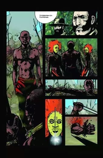 Однако сценография – это еще не все. Важны ракурс и правильное кадрирование данной сцены. В этом отношении комикс имеет существенное преимущество перед фильмом. Кинематографическое изображение закрыто с четырех сторон и даже используемая с недавних пор трехмерная графика не в силах этого изменить. Помимо использования упомянутых выше ракурсов, комикс обладает добавочным козырем в виде композиции панели, состоящей из кадров, их формы и размера и расположения кадров (они могут быть смежными, перекрываться или «перетекать» друг в друга). Стандартная прямоугольная рамка, конечно, по-прежнему очень распространена, но ее можно разнообразить овалами и другими нестандартными формами, которые соответствуют сюжету, а не наоборот. Такие методы часто использовали, среди прочих, ТОДД МАКФАРЛЕЙН и ГРЕГ КАПУЛЛО в серии «Спаун», помещая действие в рамках, забрызганных каплями крови или усеянных обломками разбитого стекла. Интересным примером может служить комикс «Восставший из ада», где действие одной из историй разворачивается между разложенными (имитирующими рамки кадров) жестоко и воистину красочно изуродованными частями тела и внутренностями. Это измерение дополнительно нагнетает ужас и обостряет зрительные ощущения, совершенно недоступные в кинематографе и литературе.