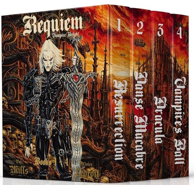 Пэт Миллс, ОЛИВЬЕ ЛЕДРУА «Реквием шевалье Вампиру» (Pat Mills, Olivier Ledroit “Requiem Chevalier Vampire”, с 2000 года) в мире под названием Résurrection люди воплощаются в монстров в зависимости от вида совершенных грехов. Комикс отличается экстремальным количеством насилия и прямо-таки взрывными, адскими иллюстрациями.