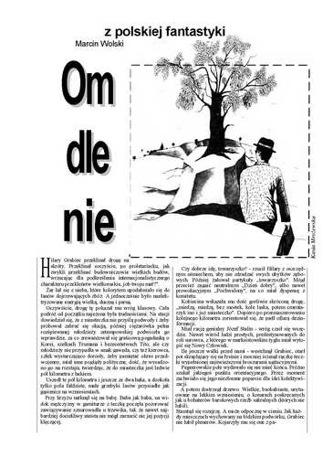 Рассказ Марцина Вольского/Marcin Wolski называется “Omdlenie/Обморок” (стр. 46 – 51). Дело происходит в Польше в 1951 году. Мелкий партийный деятель, горожанин Хиларий Грабец отправляется выполнять порученное ему задание – прочитать деревенским жителям лекцию о коварных происках классового врага. Сойдя с поезда и пытаясь пройти к нужной деревне напрямик, он сбивается с пути, жутко устает и падает в обморок с тем, чтобы очнуться в будущем -- 40 лет спустя… Вольский, как всегда, ехиден и зубаст (на страницах нашего журнала он появляется отнюдь не первый раз). Не могу не поддаться искушению воспроизвести первый абзац рассказа: