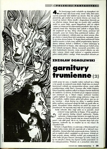 4. В номере опубликовано окончание повести “Garnitury trumenne/Погребальные костюмы”Здзислава Домолевского/Zdzisław Domolewski (стр. 43 – 56). Иллюстрации МОНИКИ РОКИЦКОЙ/Monika Rokicka. И это первая встреча с писателем на страницах нашего журнала. Его биобиблиографического профиля на сайте ФАНТЛАБ нет. А карточка повести висит здесь