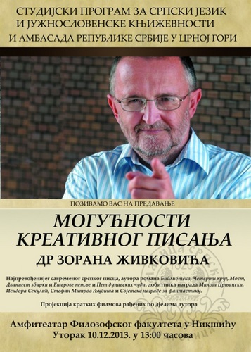 Зоран Живкович/Зоран Живковић, Zoran Živkovič (род. 5 октября 1948, в г. Белград, бывш. Югославия) -- сербский писатель, литературовед, эссеист, переводчик, книгоиздатель, профессор университета, преподаватель высшей школы.