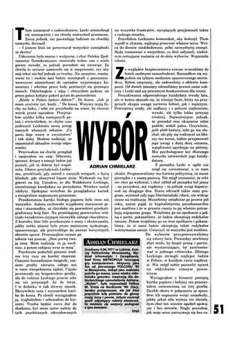 рассказ Адриана Хмеляжа/Adrian Chmielarz “Wybór/Выбор” (стр. 51-56). Поводом к написанию рассказа послужило желание автора возразить Феликсу Кресу, который на конвенте “Nordkon’94” в разговоре c ним сказал следующее: «Старик, если бы кто-то приставил дуло пистолета к виску моей жены и потребовал, чтобы я нажал кнопку запуска ракет с атомными бомбами, то вы все простились бы с этим миром…»