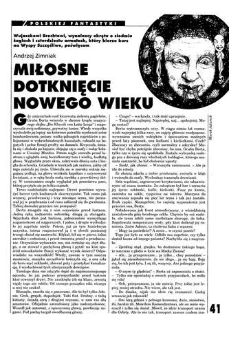 Позже рассказ вошел в состав очередного юбилейного сборника избранных рассказов журнала «Nowa Fantastyka» и даже дал ему название: “Miłosne dotknięcie nowego wieku” (1998), а еще позже, уже в новом веке, был напечатан в составе авторского сборника произведений писателя “Śmierć ma zapach szkarlatu/Смерть пахнет пурпуром” (2016). На русский язык этот рассказ не переводился, его карточки на сайте ФАНТЛАБ нет. Напомню, что с писателем нам часто приходилось встречаться на страницах нашего журнала (в последний раз – в № 7/1995), и хотя его биобиблиографии на сайте ФАНТЛАБ нет, довольно-таки подробный биобиблиографический очерк о нем можно найти, пройдя в этом блоге по тэгу «Зимняк А.»;