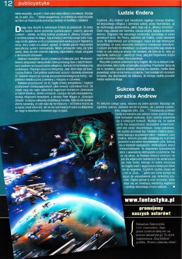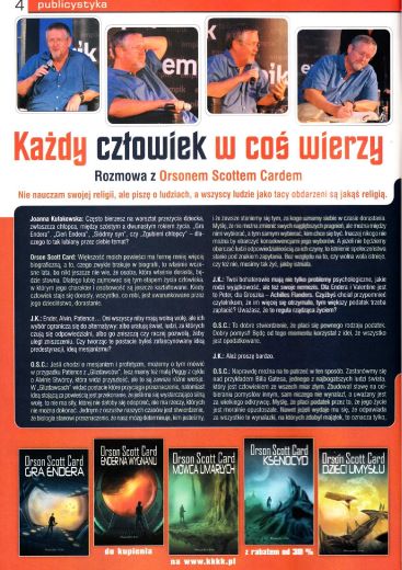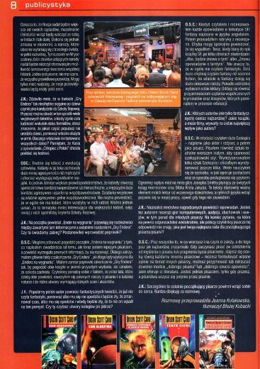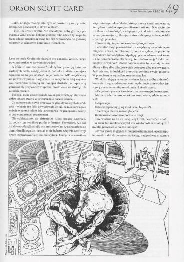 11. В рубрике «Встреча с писателем» напечатано интервью, взятое Бартеком Свидерским у американского писателя Орсона Скотта Карда/Orson Scott Card (стр. 70 -71).