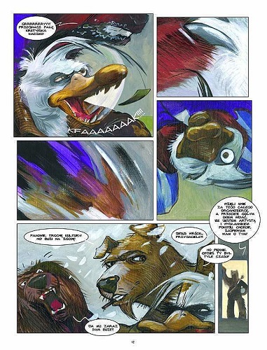 “Jutro będzie futro” – это второй (после альбома “Szminka/Губная помада”) профессиональный комикс, нарисованный по сценарию Ежи Шиляка ИОАННОЙ КАРПОВИЧ. На этот раз это целиком авторское произведение, которое частично соотносится с комиксным дебютом КАРПОВИЧ (“Biblioteka/Библиотека”). И там, и здесь мы встречаемся с одними и теми же симпатичными и чрезвычайно разговорчивыми птицами.