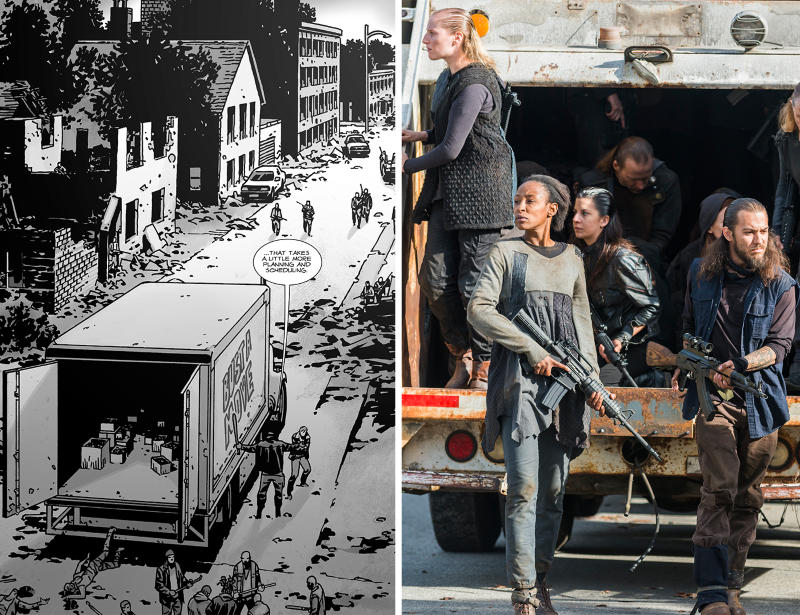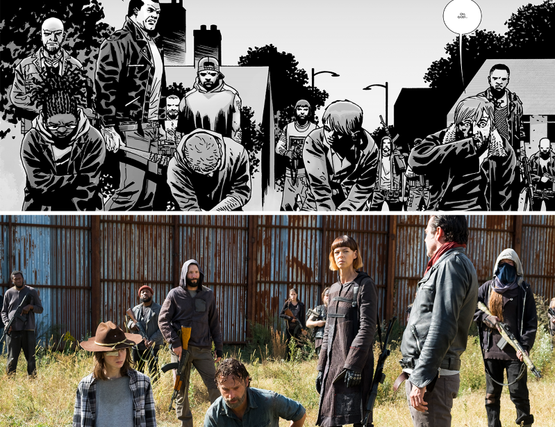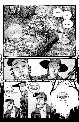 Давайте представим себе нашу обычную жизнь. Мы живем себе, живем и вдруг впадём в кому. После месячного пребывания в больнице открываем глаза и обнаруживаем, что того мира, который мы знали, больше не существует. Вокруг бродят голодные и разлагающиеся мертвецы, и мы хватаем дробовик и отправляемся наводить с его помощью порядок. Нет. У Киркмана первое чувство, которое появляется, — это шок, затем следует сомнение, страх, а затем горе. Есть еще цель, определяющая действия. И это не желание раскрыть тайну появления зомби, а попытка найти семью и обеспечить себе выживание. Поэтому на первый план выходят живые люди и ситуации, с которыми им придется столкнуться в новой, жестокой реальности, ведь живые мертвецы, несмотря на свою медлительность, так же опасны, как и голодные львы. Сценарист ни в чем не щадит своих героев, последовательно создавая им ад на земле. Неустанные нападения, смерть, увечья, зловоние, стресс и страх – это те проблемы, с которыми каждый день приходится сталкиваться товарищам по несчастью. Беда в том, что все это исходит не только от зомби. Пока одни люди пытаются обрести счастье и покой, другие пользуются новыми обстоятельствами для того, чтобы дать волю жестокости, отклонениям, безумию и жадности. Все как будто изменилось, но это осталось прежним.