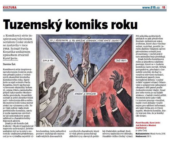 И уж конечно нельзя не упомянуть о написании им сценариев для серии комиксов «Čeśi/Чехи», которая издается вплоть до настоящего времени: «Češi 1918 — Jak Masaryk vymyslel Československo/Чехи 1918: Как Масарик выдумал Чехословакию» (2013); «Češi 1952 — Jak Gottwald zavraždil Slánského/Чехи 1952: Как Готтвальд убил Сланского» (2014); «Češi 1942 — Jak v Londýně vymysleli atentát na Heydricha/Чехи 1942: Как в Лондоне придумали покушение на Гейдриха» (2014);