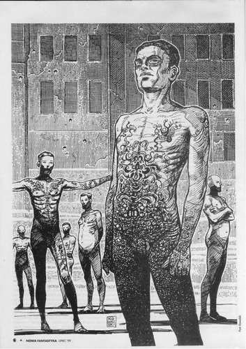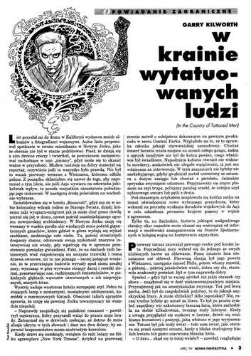 1. Рассказ английского писателя Гарри Килворта/Garry Kilworth, который называется в оригинале ”In the Country of Tattoed Men” (1990, ”Omni”, Sept.; 1993, авт. сб. “In the Country of Tattoed Men”; 2006, авт. сб. “ In the Country of Tattoed Men and Other Cyphers”), перевел на польский язык под адекватным названием ”W krainie wytatuowanych ludzi/В стране татуированных людей” РАФАЛ ВИЛЬКОНЬСКИЙ/Rafał Wilkoński (стр. 3-9). Иллюстрации ПЕТРА КОВАЛЬСКОГО/Piotr Kowalski.