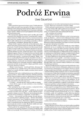 13.3. Юмореску немецкого писателя Уве Зауэрбрая/Uwe Sauerbrei, которая называется в оригинале “Erwin Reise” (2004, ант. “Schlag 13”; 2016, авт. сб. “Erwins Reisen”) перевела на польский язык под названием “Podróż Erwina/Путешествие Эрвина” АГАТА ЩИГЕЛЬСКАЯ/Agata Szczygielska (стр. 38--39).