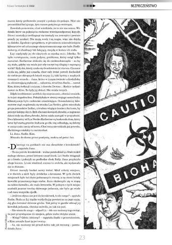 9.2. Рассказ американской писательницы Нэнси Кресс/Nancy Kress, который называется в оригинале “Nano Comes to Clifford Falls” (2006, “Asimov’s SF”, July; 2007, ант. “Year’s Best SF 12”; 2008, авт. сб. “Nano Comes to Clifford Falls and Other Stories”) в переводе МАЦЕЙКИ МАЗАН/Maciejka Mazan на польский язык под названием “Nano przybywa do Clifford Falls/Нано приходит в Клиффорд Фаллс” печатается на стр. 22—29. Иллюстрации МАРЦИНА НОВАКОВСКОГО/Marcin Nowakowski.