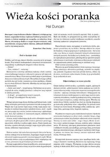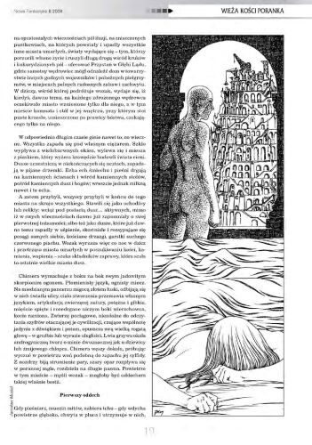 10.1. Рассказ британского (шотландского) писателя Хэла Дункана/Hal Duncan, который называется в оригинале “The Tower of Morning Bones” (2008, ант. “Paper Cities”), перевел на польский язык под названием “Wieża kości poranka/Башня костей утра” ГЖЕГОЖ КОМЕРСКИЙ/Grzegorz Komerski (стр. 17—25). Иллюстрации ЯРОСЛАВА МУСЯЛА/Jarosław Musiał.