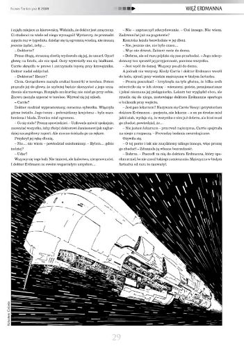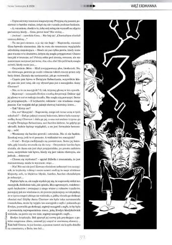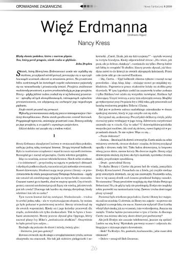 10.2. Первую часть повести американской писательницы Нэнси Кресс/Nancy Kress, которая носит в оригинале название “Erdman Negus” (2008, “Asimov’s Science Fiction”, Okt.-Nov.; 2009, ант. “The Year’s Best SF: Twenty-Sixth Annual Collection”; 2012, авт. сб. “Fountain of Age: Stories”) перевела на польский язык под названием “Więź Erdmanna/Связь Эрдманна” МАЦЕЙКА МАЗАН/Maciejka Mazan (стр. 26—48). Иллюстрации НИКОДЕМА ЦАБАЛЫ/Nikodem Cabała.