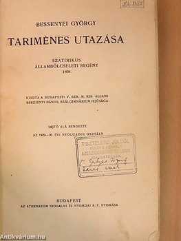 Петер Куцка: Ну конечно! Первые литературные произведения, которые ныне считаются предвестниками современной научной фантастики, вышли в свет еще в эпоху Просвещения. Прямой же и, пожалуй, наиболее известный предшественник, это утопический роман «Путешествие Тарименеша/Tarimenes utazása» (1804), написанный классиком венгерской литературы Дьëрдем Бешшенeи/György Bessenyei.