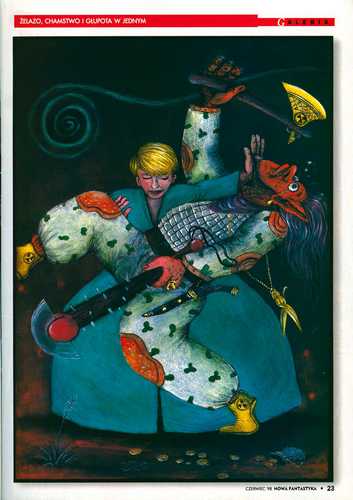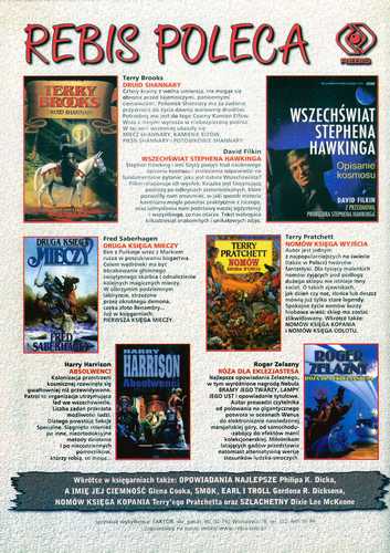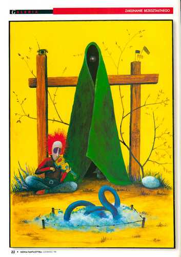 Вот и лето пришло... Июньский номер 1998 года (96-й «Новой Фантастыки» и 189-й, если считать ab ovo), редактируют: Анджей Бжезицкий/Andrzej Brzezicki (художественно-оформительский отдел), Дорота Малиновская/Dorota Malinowska (отдел иностранной литературы), Марек Орамус/Marek Oramus (отдел критики и публицистики), Тереза Пайдзиньская/Teresa Pajdzińska (корректура), Мацей Паровский/Maciej Parowski (отдел польской литературы, главный редактор), Ганна Сосиньская-Бальцер/Hanna Sosińska-Balcer (технический отдел), Кшиштоф Шольгиня/Krzysztof Szolginia (секретарь редакции). В списке постоянных сотрудников числятся: Яцек Дукай/Jacek Dukaj, Адам Холлянек/Adam Hollanek, Яцек Инглëт/Jacek Inglot, Лех Енчмык/Lech Jęczmyk, Анджей Качоровский/Andrzej W. Kaczorowski, Кшиштоф Липка/Krzysztof Lipka, Анджей Колодыньский/Andrzej Kołodyński, Доминика Матерская/Dominika Materska, Аркадиуш Наконечник/Arkadiusz Nakoniecznik, Ева Попëлек/Ewa Popiolek, Анджей Сапковский/Andrzej Sapkowski, Войтек Седенько/Wojtek Sedeńko, Яцек Собота/Jacek Sobota, а также Anihilator, Inkwizitor, Karburator, Kunktator, Negocjator, Obserwator; Predator; Reanimator, и Terminator. Тираж на прежнем уровне – 63 000 экземпляров. В оформлении передней обложки использована афиша фильма “Mortal Kombat 2”. На внутренней стороне передней обложки размещена реклама НФ-книг издательства “Prószyński i S-ka”. «Галерея» этого номера посвящена обсуждению творчества художника КШИШТОФА КАИНА MAЯ/Krzysztof Kain May (стр. 17-23). На внутренней стороне задней обложки напечатана реклама новой серии научно-популярных книг издательства “Prószyński i S-ka”, на внешней стороне – рекламируются книги издательства “Rebis”. Цена журнального экземпляра 4 злотых 50 грошей.