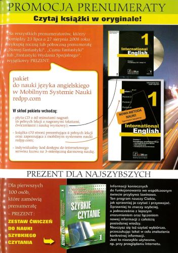 На внутренней стороне задней обложки размещена реклама коллекции любителей комиксов и «ужасов» “Obrazy grozy”, на внешней стороне задней обложки – реклама книг автора известного американского писателя военной фантастики Джона Ринго.
