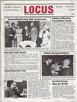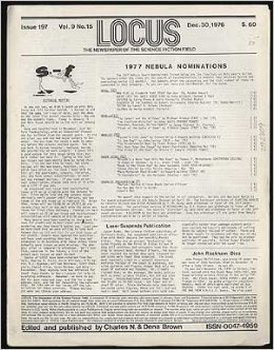 Чарльз Браун: Это началось в 1968 году. Не было никакой конкретной причины или, иначе говоря, было много разных причин. Даже трудно это сказать. «Локус»… Я хотел быть связанным с научной фантастикой, хотел писать, но мне нужно было что-то, что меня мобилизовало бы. Я подумал, что если стану издавать журнал, то это будет самое то. Были и другие причины. Мой приятель, который занимался чем-то подобным, погиб в автокатастрофе. А кроме того я подумал, что это очень легкий способ добычи дармовых книжек. Я всегда тратил кучу денег на книжки НФ, а тут издатели будут присылать мне их даром, лишь затем, чтобы я о них писал!