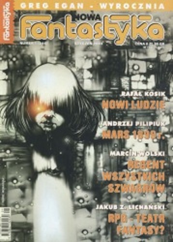 Январский номер 2003 года (151-й «Новой Фантастыки» и 244-й, если считать ab ovo) редактируют: Анджей Бжезицкий/Andrzej Brzezicki (художественно-оформительский отдел), Марек Нововейский/Marek S. Nowowiejski (отдел иностранной литературы), Марек Орамус/Marek Oramus (отдел критики и публицистики), Мацей Паровский/Maciej Parowski (отдел польской литературы, главный редактор), Кшиштоф Шольгиня/Krzysztof Szolginia (секретарь редакции), Веслава Ярых/Wiesława Jarych (корректура). В списке постоянных сотрудников числятся: Яцек Дукай/Jacek Dukaj, Аркадиуш Гжегожак/Arkadiusz Grzegorzak, Марек Холыньский/Marek Hołyński, Лех Енчмык/Lech Jęczmyk, Анджей Качоровский/Andrzej W. Kaczorowski, Анджей Колодыньский/Andrzej Kołodyński, Доминика Матерская/Dominika Materska, Аркадиуш Наконечник/Arkadiusz Nakoniecznik, Анджей Сапковский/Andrzej Sapkowski, Яцек Собота/Jacek Sobota, Гжегож Щепаняк/Grzegorz Szczepaniak, Бартек Свидерский/Bartek Świderski, а также Agregator, Aligator, Anihilator, Kunktator, Negocjator, Predator, Reanimator и Terminator. Тираж номера не указан. В оформлении лицевой стороны передней обложки использована авторская работа польского художника ПАВЛА МОРОВЯКА/Pawieł Morowiak. Внутренняя сторона передней обложки занята рекламой книжной продукции издательства “Prószyński i S-ka”. В «Галерее» (стр. 17-24 и внешняя сторона задней обложки) предлагается, по словам Мацея Паровского, «тот вид фантастического искусства, который никто особо не ценит, но все разглядывают с так называемым стыдливым удовольствием» Собственно, и сопровождающая статья Бжезицкого носит название «Если бы Фразетта был женщиной…» Речь идет о работах американской художницы-иллюстратора РОВЕНЫ МОРРИЛЛ (1944 – 2021), почерпнутых из замечательного альбома “The Art of Rowena” (London: “Paper Tiger”, 2000), текст к которому написала Дорис Вальехо (да-да, первая жена знаменитого БОРИСА ВАЛЬЕХО). На внутренней стороне задней обложки размещен анонс следующей «Галереи» — одна из работ британского художника ДЖИМА БАРНСА. Цена экземпляра -- 6 злотых 90 грошей.