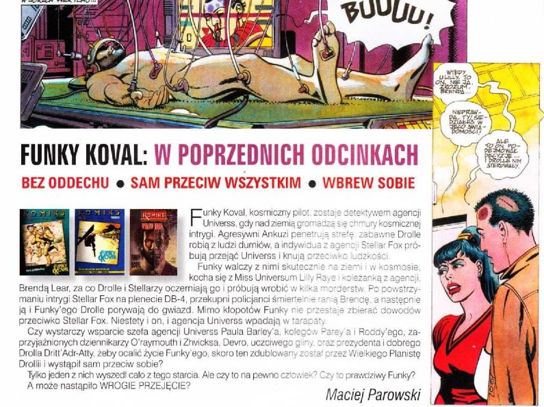 13. Небольшая врезка, написанная польским журналистом, заместителем главного редактора нашего журнала, писателем НФ и сценаристом комиксов Мацеем Паровским/Maciej Parowski, предваряет публикацию первого фрагмента нового альбома сериала «Фанки Коваль» и носит название: