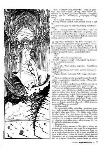 3. Рассказ американского писателя Джона Райта/John C. Wright, который называется в оригинале “Guest Law” (1997, “Asimov’s Science Fiction”, July; 1998, ант “Year’s Best SF 3”; 2000, ант. “The Space Opera Renaissance”), перевел под названием “Prawo gościnności/Закон гостеприимства” РАФАЛ ВИЛЬКОНЬСКИЙ/Rafał Wilkoński (стр. 25-35). Иллюстрации ЮЛИИ КОВАЛЬСКОЙ/Julia Kowalska.