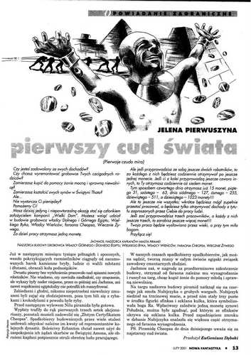 2. Миниатюру российской писательницы Елены Первушиной, которая в оригинале называется «Первое чудо света» (2001, брош. «Интерпресскон – 2001»; 2007, ант. «Лучшее за 2007. Российское фэнтези, фантастика, мистика») перевел на польский язык под названием “Pierwszy cud świata/Первое чудо света” ЭУГЕНЮШ ДЕМБСКИЙ/EuGeniusz Dębski (стр. 13). Иллюстрация ПАТРИЦИИ МАРОН/Patrycja Maron.