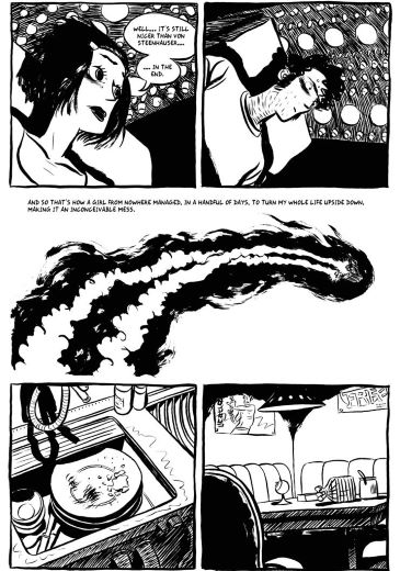 ПЕТЕРС в очередной раз подтверждает свою невероятную наблюдательность и умение рисовать человеческие эмоции («Синие таблетки», «РГ»). Он умело играет с мимикой персонажей, использует многослойность, но скупо вырисовывает эмоции персонажей. Впечатление дополняется умелым кадрированием, использованием черно-белых пятен в сочетании с тонким чувством диалога. Ни добавить, ни убавить -- воспитывающее и идеальное по форме путешествие во взрослую жизнь.