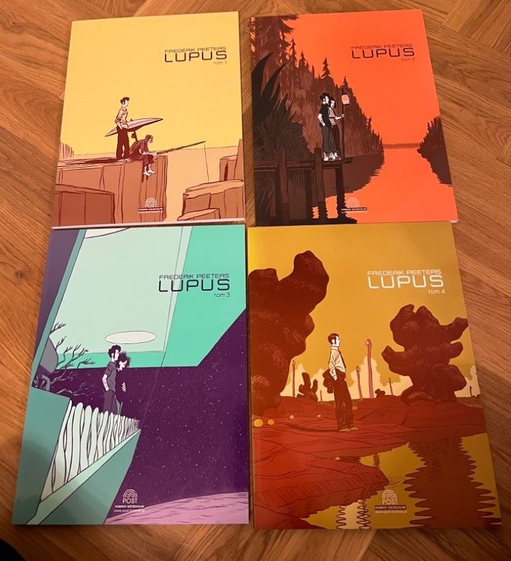 LUPUS TOM 1. Scenariusz i rysunki Frederik Peeters. Tłum. Wojciech Nowicki. Post 2005; LUPUS TOM 2. Scenariusz i rysunki Frederik Peeters. Tłum. Marta Dworák, Post 2009 («Люпус». Том 1. Сценарий и рисунки ФРЕДЕРИКА ПЕТЕРСА. Пер. ВОЙЦЕХА НОВИЦКОГО. “Post”, 2005; «Люпус». Том. 2. Сценарий и рисунки ФРЕДЕРИКА ПЕТЕРСА. Пер. МАРТЫ ДВОРАК. “Post”, 2009).