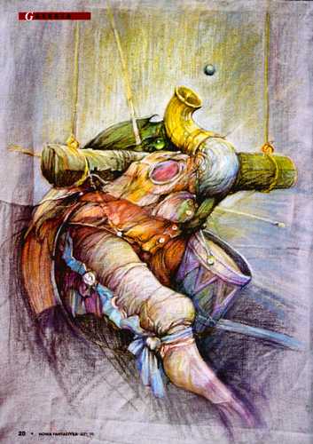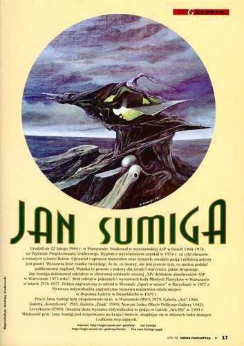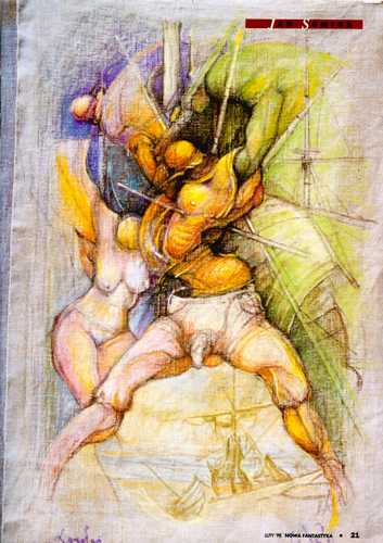 Февральский номер 1998 года (92-й «Новой Фантастыки» и 185-й, если считать ab ovo), редактируют: Анджей Бжезицкий/Andrzej Brzezicki (художественно-оформительский отдел), Дорота Малиновская/Dorota Malinowska (отдел иностранной литературы), Марек Орамус/Marek Oramus (отдел критики и публицистики), Тереза Пайдиньская/Teresa Pajdińska (корректура), Мацей Паровский/Maciej Parowski (отдел польской литературы, главный редактор), Ганна Сосиньская-Бальцер/Hanna Sosińska-Balcer (технический отдел), Кшиштоф Шольгиня/Krzysztof Szolginia (секретарь редакции). В списке постоянных сотрудников числятся: Яцек Дукай/Jacek Dukaj, Адам Холлянек/Adam Hollanek, Яцек Инглëт/Jacek Inglot, Лех Енчмык/Lech Jęczmyk, Анджей Качоровский/Andrzej W. Kaczorowski, Кшиштоф Липка/Krzysztof Lipka, Анджей Колодыньский/Andrzej Kołodyński, Доминика Матерская/Dominika Materska, Аркадиуш Наконечник/Arkadiusz Nakoniecznik, Ева Попëлек/Ewa Popiolek, Анджей Сапковский/Andrzej Sapkowski, Войтек Седенько/Wojtek Sedeńko, Яцек Собота/Jacek Sobota, а также Anihilator, Inkwizitor, Karburator, Kunktator, Negocjator, Obserwator; Predator; Reanimator, и Terminator. Тираж на прежнем уровне – 63 000 экземпляров. В оформлении передней обложки использована работа польской художницы ИОАННЫ ПЛАКЕВИЧ/Joanna Plakiewicz. На внутренней стороне передней обложки размещена реклама НФ-книг издательства “Prószyński i S-ka”. «Галерея» (стр. 17-23) отдана в распоряжение польскому художнику ЯНУ СУМИГЕ/Jan Sumiga (Ну вот совершенно не мое. Жуть такая... Но из песни слов не выкинешь... W.). На внутренней стороне задней обложки напечатана реклама научно-популярных книг издательства “Prószyński i S-ka”, на внешней стороне – реклама НФ-книг издательства “Rebis”. Цена журнального экземпляра – 4 злотых 30 грошей.