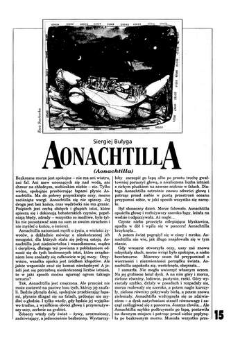 3. Небольшой рассказ белорусского писателя Сергея Булыги, который называется в оригинале «Аонахтилла» (1990, ант. “Дорога миров”, т. 1; 1991, авт. сб. “Бродяга и фея”), перевел на польский язык под тем же названием «Aonachtilla» СЛАВОМИР КЕНДЗЕРСКИЙ/Sławomir Kędzierski (стр. 15-16). Рисунок ЕВЫ СУХОЦКОЙ/Ewa Suchocka. “Это трудный и грустный текст, свидетельство отчаяния и поисков, которые по определению не могут проходить безболезненно” (Мацей Паровский).