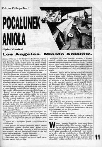 2. Новеллу американской писательницы Кристин Кэтрин Раш/Kristin Kathryn Rusch, которая называется в оригинале “Spirit Guides” (1995, ант. “Heaven Sent”; 1995, “The Magazine of Fantasy and Science Fiction”, Jun; 2001, авт. сб. “Stories for an Enchanted Afternoon”) перевела на польский язык под названием “Pocałunek Anioła/Поцелуй ангела” АННА ДОРОТА КАМИНЬСКАЯ/Anna Dorota Kamińska (стр. 11-16). Иллюстрации ЯКУБА ЩЕНСНОГО/Jakub Szczęsny.