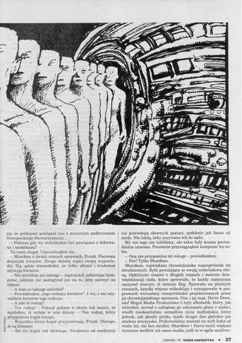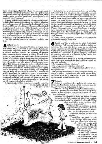 3. Знаменитый роман американского писателя Роберта Хайнлайна/Robert A. Heinlein, который в оригинале называется «Stranger in a Strange Land» (1961, премия “Hugo”), перевел на польский язык под адекватным названием «Obcy w obcym kraju/Чужак в чужой стране» АРКАДИУШ НАКОНЕЧНИК/Arkadiusz Nakoniecznik (стр. 27-43). Иллюстрировал МАРЕК БЕЛЕЦКИЙ/Marek Bielecki. В номере публикуется восьмая часть перевода романа.