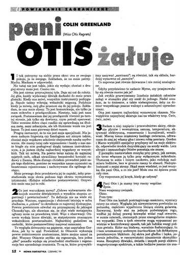 3. Рассказ британского писателя Колина Гринленда/Colin Greenland, который называется в оригинале “Miss Otis Regrets” (1982, "Fiction Magazine"; 1997, авт. сб. “The Plenty Principle”) перевела на польский язык под названием “Pani Otis żaluje/Госпожа Отис сожалеет” ДАНУТА ГУРСКАЯ/Danuta Górska. Иллюстрации ЗУЗАННЫ СИКОРЫ/Zuzanna Sikora.