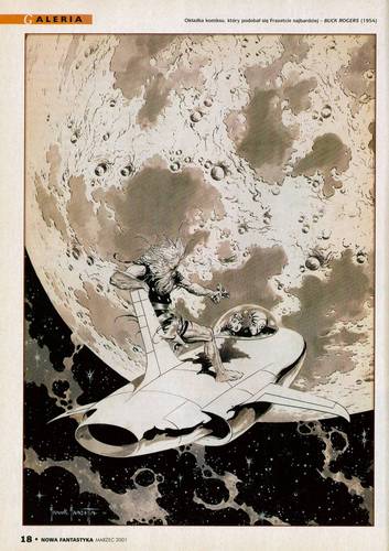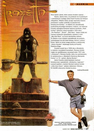 Мартовский номер 2001 года (129-й «Новой Фантастыки» и 222-й, если считать ab ovo) редактируют: Анджей Бжезицкий/Andrzej Brzezicki (художественно-оформительский отдел), Аркадиуш Наконечник/Arkadiusz Nakoniecznik (отдел иностранной литературы), Марек Орамус/Marek Oramus (отдел критики и публицистики), Мацей Паровский/Maciej Parowski (отдел польской литературы, главный редактор), Кшиштоф Шольгиня/Krzysztof Szolginia (секретарь редакции), Веслава Ярых/Wiesława Jarych (корректура). В списке постоянных сотрудников числятся: Яцек Дукай/Jacek Dukaj, Аркадиуш Гжегожак/Arkadiusz Grzegorzak, Марек Холыньский/Marek Hołyński, Яцек Инглëт/Jacek Inglot, Лех Енчмык/Lech Jęczmyk, Анджей Качоровский/Andrzej W Kaczorowski, Анджей Колодыньский/Andrzej Kołodyński, Доминика Матерская/Dominika Materska, Анджей Сапковский/Andrzej Sapkowski, Войтек Седенько/Wojtek Sedeńko, Яцек Собота/Jacek Sobota, Гжегож Щепаняк/Grzegorz Szczepaniak, а также Agregator, Aligator, Anihilator, Karburator, Kunktator, Negocjator, Obserwator, Predator, Reanimator и Terminator. Тираж номера не указан. В оформлении лицевой стороны передней обложки принимала участие польская художница СИЛЬВИЯ РЕСТЕЦКАЯ/Sylwia Restecka. В «Галерее» безраздельно властвует американский художник ФРЭНК ФРАЗЕТТА/Frank Frazetta (стр. 17-24). На тыльной стороне передней обложки напечатана афиша фильма «Crouching Tiger, Hidden Dragon». На внутренней стороне задней обложки размещен анонс следующей «Галереи», а на внешней стороне задней обложки рекламируются книги издательства “Rebis”. Цена экземпляра -- 6 злотых 40 грошей.