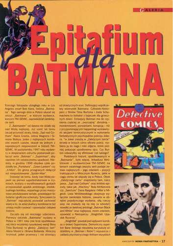 Апрельский номер 1999 года (106-й «Новой Фантастыки» и 199-й, если считать ab ovo) редактируют: Анджей Бжезицкий/Andrzej Brzezicki (художественно-оформительский отдел), Аркадиуш Наконечник/Arkadiusz Nakoniecznik (отдел иностранной литературы), Марек Орамус/Marek Oramus (отдел критики и публицистики), Тереза Пайдзиньская/Teresa Pajdzińska (корректура), Мацей Паровский/Maciej Parowski (отдел польской литературы, главный редактор), Кшиштоф Шольгиня/Krzysztof Szolginia (секретарь редакции). В списке постоянных сотрудников числятся: Бартек Хациньский/Bartek Chaciński, Михал Дагаев/Michal W. Dagajew, Яцек Дукай/Jacek Dukaj, Яцек Инглëт/Jacek Inglot, Лех Енчмык/Lech Jęczmyk, Анджей Качоровский/Andrzej W. Kaczorowski, Кшиштоф Липка/Krzysztof Lipka, Анджей Колодыньский/Andrzej Kołodyński, Дорота Малиновская/Dorota Malinowska, Доминика Матерская/Dominika Materska, Ева Попëлек/Ewa Popiolek, Анджей Сапковский/Andrzej Sapkowski, Войтек Седенько/Wojtek Sedeńko, Яцек Собота/Jacek Sobota, а также Anihilator, Inkwizitor, Karburator, Kunktator, Negocjator, Obserwator; Predator; Reanimator и Terminator. Тираж номера чуточку снизился -- 57,6 тысяч экземпляров. В оформлении передней обложки использована работа художника Ф. РУБИО/F. Rubio. На внутренней стороне передней обложки напечатана реклама четырех частей фильма “Alien” на видеокассетах. В «Галерее» вновь речь идет о комиксе. К сожалению, польская читательская публика не приняла культового в США «Бэтмана», о чем и пишет Кшиштоф Липка в статье “Epitafium dla Batmana/Эпитафия для Бэтмана" (стр. 17-19); а Анджей Бжезицкий в статье “Nowe wcielenie Corbena/Новое воплощение Корбена” рассказывает о художнике РИЧАРДЕ КОРБЕНЕ/Riczard Corben и его комиксе “Denz”, созданном для фирмы “Penthouse Comix” (стр. 20-23). На внутренней стороне задней обложки размещена реклама справочной литературы издательства “Prószyński i S-ka”, на внешней стороне задней обложки напечатана реклама НФ книг издательства “Rebis”. Цена журнального экземпляра -- 4 злотых 90 грошей.