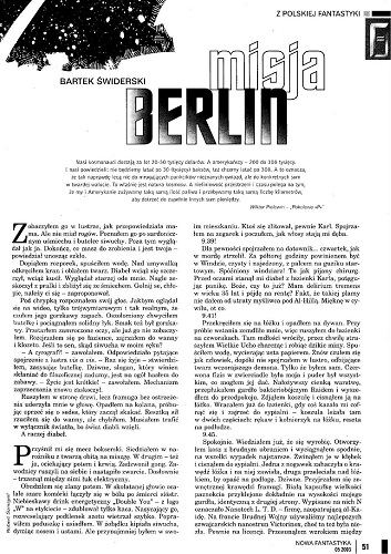 Рассказ “Misja BERLIN/Миссия «Берлин»” написал Бартек Свидерский/Bartek Świderski (стр. 51—64). Иллюстрации РОБЕРТА ШМИГЕЛЯ/Robert Szmigiel.
