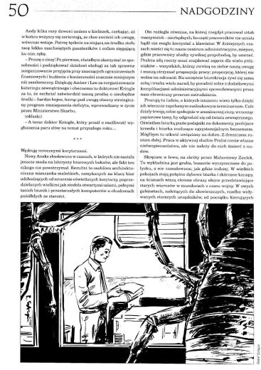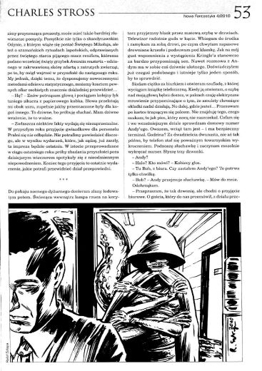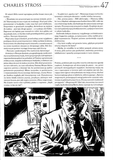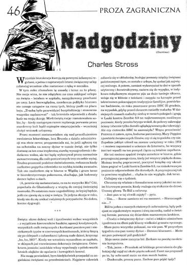 18.1. Повесть британского (а точнее шотландского) писателя Чарльза Стросса/Charles Strossm, которая в оригинале носит название “Overtime” (22 дек. 2009, Tor; 2013, ант. “The Stories: Five Years of Original Fiction on Tor.com”; 2017, “Straordinal”) перевела на польский язык под названием “Nadgodziny/Переработка” ПАУЛИНА БРАЙТЕР/Paulina Braiter (стр. 46—56). Иллюстрации РАФАЛА ШЛАПЫ/Rafał Szłapa.