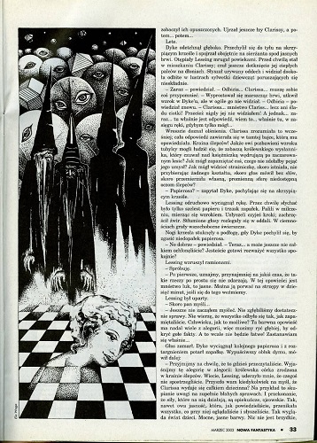 3. Повесть американского писателя Майкла Суэнвика/Michael Swanwick, которая называется в оригинале “Gryffin’s Egg” (1991; 1992; 1992, “Isaac Asimov’s SF Magazine”, May), перевел на польский язык под названием “Jajo Gryfa/Яйцо грифона” АНДЖЕЙ ПЕНЬКОВСКИЙ/Andrzej Pieńkowski. В номере печатается вторая, заключительная часть перевода (стр. 25-40). Иллюстрации МОНИКИ СВЕТЛИК/Monika Śwetlik.
