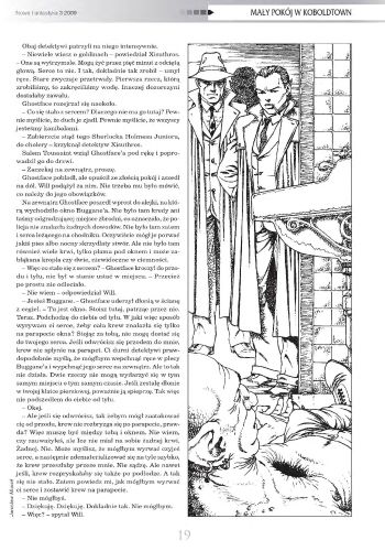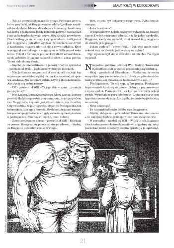 12.2. Рассказ американского писателя Майкла Суэнвика/Michael Swanwick, который носит в оригинале название “Little Room in Koboltdown” (2007, “Asimow’s Science Fiction”, Apr.-May; 2007, авт. сб. “The Dog Said Bow-Wow”), перевела на польский язык под названием “Mały pokój w Koboltdown/Маленький гостиничный номер в Кобольтдаун” ГАБРИЭЛЯ СЕНЯВСКАЯ/Gabriela Sieniawska (стр. 17—22). Иллюстрации ЯРОСЛАВА МУСЯЛА/Jarosław Musiał.